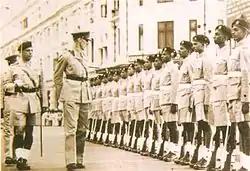 At the end of World War II, CDF which had increased in size during the war began demobilisation. In 1948 Sri Lanka gained independence from Britain, becoming a Dominion within the Commonwealth and a year earlier Ceylon entered into the bi-lateral Anglo-Ceylonese Defence Agreement of 1947. This was followed by the Army Act No. 17 of 1949 which was passed by Parliament on April 11, 1949, and formalised in Gazette Extraordinary No. 10028 of October 10, 1949 marked the creation of the Ceylon Army, consisting of a regular and a volunteer force, the later being the successor of the disbanded CDF.[16][17] Therefore, October 10, 1949, is considered the day the Ceylon Army was raised, and as such October 10 is celebrated annually as Army Day. Brigadier James Sinclair, Earl of Caithness was appointed as Commandant of the Ceylon Army. The Defence Agreement of 1947 provided the assurance that British would come to the aid of Ceylon in the event it was attacked by a foreign power and provided British military advisers to build up the country's military. In November, a Ceylon Army Guard takes over duties at Echelon Barracks from the Guard of the British Army.[18]