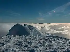 St. Boris Peak (Bulgarian: връх Св. Борис, romanized: vrah Sv. Boris, IPA: [ˈvrɤx svɛˈti boˈris]) is an ice-covered mountain rising to 1,700 m in Friesland Ridge, Tangra Mountains on Livingston Island in the South Shetland Islands, Antarctica. It is the first or second highest peak of both the mountains and the island along with Mount Friesland (1,700.2 m). The two are connected by a short saddle of elevation 1649 m[1] dominated by ‘The Synagogue’, a sharp-peaked rock-cored ice formation abutting upon the central summit of St. Boris Peak. The peak is also connected to Simeon Peak by Paril Saddle, and surmounts Huntress Glacier to the northwest and west, and Macy Glacier to the southeast.