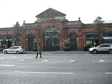 The original (pre 1890) market was smaller than the new structure. The city surveyor (responsible for the new Albert Bridge following its collapse in the 1880s) JC Bretland designed the building. It was built in red brick with sandstone dressing. Externally it features Roman styled arches with Latin and Irish inscriptions – the City's Latin motto "Pro Tanto Quid Retribuamus", meaning "what shall we give in return for so much?" and the Irish phrase "Lámh Dearg na hÉireann", "Red Hand of Ireland". The main entrance arch displays the Belfast Coat of Arms. This newly covered market opened to the public on 20 June 1890.