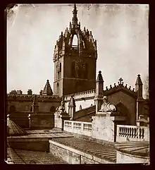 St Giles' is one of Scotland's most important medieval parish church buildings.[13] The first church of St Giles' was a small, Romanesque building of which only fragments remain. In the 14th century, this was replaced by the current building, which was enlarged between the late 14th and early 16th centuries. The church was altered between 1829 and 1833 by William Burn and restored between 1872 and 1883 by William Hay with the support of William Chambers. Chambers hoped to make St Giles' a "Westminster Abbey for Scotland" by enriching the church and adding memorials to notable Scots. Between 1909 and 1911, the Thistle Chapel, designed by Robert Lorimer, was added to the church.[4][14]