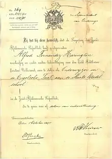 The Staats Model School is situated on the corner of Lilian Ngoyi (previously Van der Walt[1]) and Nana Sita (previously Skinner[1]) Streets in Pretoria, Gauteng Province, Republic of South Africa. It originated from a school established in 1893 to train teachers in the Zuid Afrikaansche Republik, or ZAR. Alfred Fernandez Harington was appointed English master on 1 October 1895.