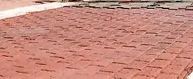 The ability of stamped concrete to resemble other building materials makes stamped concrete a less expensive alternative to using those other authentic materials such as stone, slate or brick.[7] There are three procedures used in modern stamped concrete which distinguish it from other concrete procedures: the addition of a base color, the addition of an accent color, and stamping a pattern into the concrete.[8] These three procedures provide stamped concrete with a color and shape similar to the natural building material. It also is longer-lasting than paved stone, and still resembles the look.