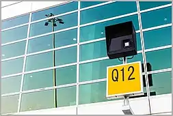 The Parallax Aircraft Parking Aid is frequently combined with an AGNIS system, informing flight crews when to stop. The device features no electronics or moving parts; it consists simply of a large grey box (usually with one or more sides missing) with a large rectangular slot cut into the front.