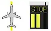 Inside the box, towards the rear, is a white stick or fluorescent tube, which appears to move from one side of the slot to the other as the viewer moves closer, although it is in fact fixed and the effect is merely due to perspective (see parallax).[1] Above and/or below this slot will be markings in white or yellow, indicating where different types of plane should stop.