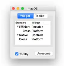 SWT widgets have the same look and feel as native widgets because they often are the same native widgets. This is in contrast to the Swing toolkit where all widgets are emulations of native widgets. In some cases the difference is distinguishable. For example, the macOS tree widget features a subtle animation when a tree is expanded and default buttons actually have an animated pulsing glow to focus the user's attention on them. The default Swing version of these widgets do not animate.