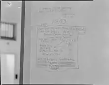 The women and children contributed to a sense of normality as their presence provided conventional social, family, and gender relations. The internees believed the children's presence made them less selfish, as it forced them to think of the latter's welfare.[8] The women organised Christmas and birthday celebrations.[21] Other diversions such as musicals, plays, recitals, and variety shows were also staged.[22] Although the camp lacked books and educational supplies, the teachers and educational administrators amongst the internees were able to provide lessons for the children at the primary and secondary levels. Additionally, extensive educational opportunities were available for the adults: language courses for Chinese, Malay, and French, and also lectures on photography, yachting, journalism, and poultry-keeping.[22] In addition to the personal diaries kept by internees, many of them now held by the Imperial War Museum, a record of life in the camp was created using a double bed sheet. The Day Joyce Sheet was embroidered and appliquéd with 1100 names, signs and figures including a diary in code.[23]