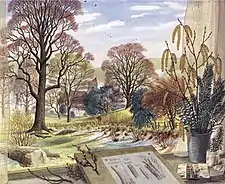 During the 1930s, Badmin began to receive commissions for magazine illustration; he produced his first book illustrations in 1937 (Highways and Byways of Essex by Clifford Bax, with further illustrations by F. L. Griggs). He wrote and illustrated three books for Puffin, the children's imprint of Penguin Books, one of which (Trees in Britain, 1943) has been described as "one of the most beautiful illustrated books of [the 20th] century".[4] The book was so successful it later became adopted as a set text by an agricultural college.[5]