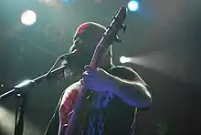 The band also embarked on a worldwide tour in 2019 to celebrate the 20th anniversary of their debut album Wisconsin Death Trip as well as a memorial to Wayne Static,[37] featuring an unidentified vocalist named "Xer0" wearing a mask some confused to be that of Wayne Static.[38] This decision received mixed feedback, with some journalists calling it a "creepy Wayne Static cosplay"[39] and "zombie Wayne Static".[15] The band insisted that Static's family gave the band their blessing,[15][40] and Jay noted that it fit Static's "terrifically morbid sense of humour".[15] While Xer0's identity has never been officially revealed, speculation has generally pointed at Dope singer Edsel Dope.[41][42] Edsel himself has denied this.[43] The mask was made by Laney Chantal, wife of Twiggy Ramirez.[44]
