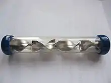 ![]() A promotional sample of a helical static mixer enclosed in a clear tubular housing | |