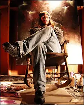His paintings have been exhibited all over the world and are noted for their sinister (sometimes satanic) themes and otherworldly aesthetic; influencing a new wave of artists in the dark arts.[2] His artwork, drawings and photographs usually reflect visions of a pre/post-apocalyptic industrial landscape and the struggle for survival contained in dreams of enlightenment.