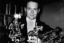 ![]() Stephen R. Johnson holding his MTV "Moonman" awards. | |