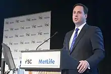 Ciobo addressing a Financial Services Council conference in Sydney in 2014.