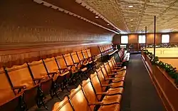 Steyer Opera House is a historic building located in Decorah, Iowa, United States. The three-story, brick commercial block was designed by F.G. Brant of Dubuque. Its original owner and namesake was Joseph Steyer, who emigrated from Luxembourg in 1852 and settled in Decorah in 1865. The building was built in 1870 and an additional three bays were added to the east side in 1875.[2] The first floor houses retail space, the second floor historically housed apartments, and the auditorium is on the third floor. The walls and ceiling are covered with tin that is pressed in a variety of decorative patterns. Doorways flank the proscenium. They are framed by paneled pilasters and capped with a broad architrave. The balcony that rings the main floor on three sides of the auditorium was part of the 1875 renovation of the building. It is now part of the neighboring Hotel Winneshiek. The building was individually listed on the National Register of Historic Places in 1980.[1] In 2017 it was included as a contributing property in the Decorah Commercial Historic District.[3]