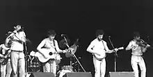 Stockton's Wing is an Irish band formed in 1977 by four All-Ireland champion musicians; Paul Roche on flute/whistle, Maurice Lennon on fiddle, Tommy Hayes on bodhran, and Kieran Hanrahan on banjo/mandolin, along with Tony Callinan on guitar and vocals. They have collaborated with well known artists including Christy Moore, "as well as more than a dozen musicians who have worked to create an impressive collection of work".[2] Their style has been described as including "Irish folk, melancholic ballads, upbeat jigs, and modern pop".[3] Stockton's Wing have supported artists including Michael Jackson and Prince.[4]