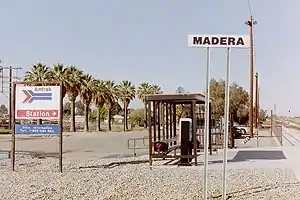 - "MADERA CALIFORNIA (MDR)". trainweb.org. TrainWeb LLC. Retrieved 1 Jul 2014. Compare the photos taken on 15 December 2001 to the ones take on 15 September 2008