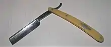 The mechanical properties of bone make it a good handle material.[33] Handles were once made of elephant ivory, but this has been discontinued, though fossil ivory, such as mammoth, is still sometimes used, and antique razors with ivory scales are occasionally found (it is illegal to kill elephants for their ivory, but it is legal to buy an ivory-handled razor made before 1989).[36][37][38]