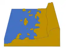 Strandflat (Norwegian: strandflate[1]) is a landform typical of the Norwegian coast consisting of a flattish erosion surface on the coast and near-coast seabed. In Norway, strandflats provide room for settlements and agriculture, constituting important cultural landscapes.[1] The shallow and protected waters of strandflats are valued fishing grounds that provide sustenance to traditional fishing settlements.[1] Outside Norway proper, strandflats can be found in other high-latitude areas, such as Antarctica, Alaska, the Canadian Arctic, the Russian Far North, Greenland, Svalbard, Sweden and Scotland.