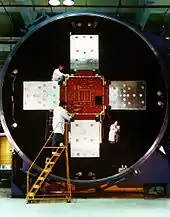 Launched on the same rocket as the RME, the Low-power Atmospheric Compensation Experiment (LACE) satellite was built by the United States Naval Research Laboratory (NRL) to explore atmospheric distortion of lasers and real-time adaptive compensation for that distortion. The LACE satellite also included several other experiments to help develop and improve SDI sensors, including target discrimination using background radiation and tracking ballistic missiles using Ultraviolet Plume Imaging (UVPI).[69] LACE was also used to evaluate ground-based adaptive optics, a technique now used in civilian telescopes to remove atmospheric distortions.