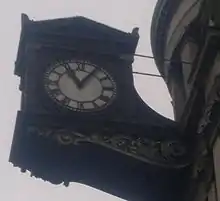 Streatham Library opened in 1890, originally consisting of two reading rooms, a lending library, and the librarians office. The library was erected on the site of Goslin's Field, on which cattle used to graze before being butchered by the local butcher, John Gosling. The clock was added to the building in 1912, as a memorial to King Edward VII. The money was raised by public subscription. Originally it had been hoped to build a clock tower in tribute to the king, but insufficient money was raised, and all that could be afforded was the clock visible today.[1]