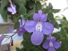 Streptocarpus saxorum, called the false African violet, is a species of flowering plant in the genus Streptocarpus, subgenus Streptocarpella, native to Kenya and Tanzania.[2][3] It is an evergreen perennial that often bears flowers nearly year-round.[3] Its "compact" variety has gained the Royal Horticultural Society's Award of Garden Merit as a houseplant.[4]