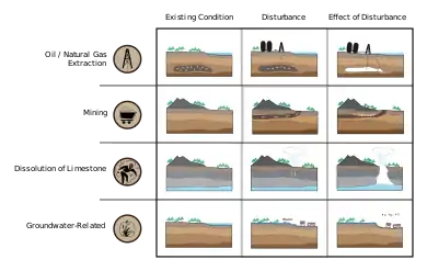 Ground subsidence is of global concern to geologists, geotechnical engineers, surveyors, engineers, urban planners, landowners, and the public in general.[4] Pumping of groundwater or petroleum has led to subsidence of as much as 9 meters (30 ft) in many locations around the world and incurring costs measured in hundreds of millions of US dollars.[5]