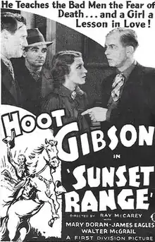 Sunset Range is a 1935 American Western film set in modern times directed by Ray McCarey and starring Hoot Gibson. The film received a mostly positive reception, with praise for Gibson's acting and delivery of humor in what was his first western film in two years.