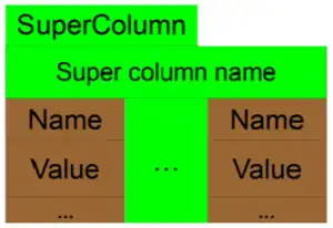 A super column is a tuple (a pair) with a binary super column name and a value that maps it to many columns.[1] They consist of a key–value pairs, where the values are columns. Theoretically speaking, super columns are (sorted) associative array of columns.[2] Similar to a regular column family where a row is a sorted map of column names and column values, a row in a super column family is a sorted map of super column names that maps to column names and column values.