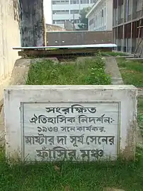 After the Chittagong raid in 1930 and a fierce battle where over 80 British Indian Army soldiers and 12 revolutionaries were killed, Sen and other surviving revolutionaries dispersed into small groups and hid in neighbouring villages, launching raids on government personnel and property. Sen was arrested on 16 February 1933, tried and was hanged on 12 January 1934.[4] Many of his fellow revolutionaries were also caught and sentenced to long periods of imprisonment.[5]