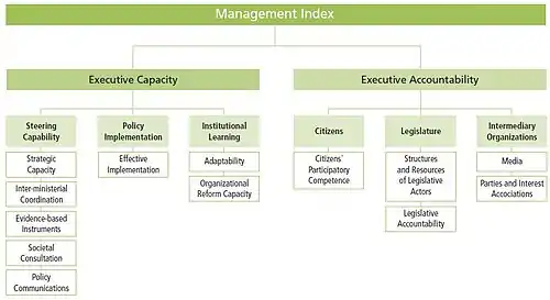The Management Index examines government performance and analyzes a country's reform capacity through two dimensions: