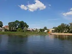 The locality of Suure-Jaani was initially called Wallola (or "Valle"), first recorded in 1423(?). The town began to develop around the (now Lutheran) Church of Great Saint John the Evangelist (Groß Sankt Johannis in German), built before the year 1300.[2] There is a Lutheran cemetery near the church. The church was severely damaged during the Livonian War (1558–1582) and the Great Northern War (1700–1721), particularly the latter (the church was burnt down in 1703 and the restoration was completed only in 1767). The present name, "Suure-Jaani" (literally meaning "Great John's"), which came into widespread use for the locality only in the 1880s, when it developed into a village in its own right, is an Estonian derivative from the German name of the church. Until then, the name "Suure-Jaani" was used only for the church as well as its immediate surroundings (the church estate), while other areas of the present town were separate villages: Valula (or Wallola; the southern part of the present town of Suure-Jaani), Nuutre (the eastern part) and Päraküla (or Perraküla; the north-western part; one part of the traditional Päraküla still being a separate village nowadays).