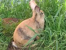 The Swedish Hare is a breed of domestic rabbit that resembles a hare and was developed, starting in 2008 in Sweden, for its competitive jumping ability.[1] At the same time but separately, the Elfin breed was being developed in the United States—also in response to the popularity of rabbit show jumping. The Elfin officially became the Swedish Hare in October 2011.