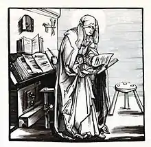 One of the earliest Swedish manuscripts is Västgötalagen, fragments of which exist from 1250. The first complete copy of the legal text was written in 1280.[6] Medieval Swedish laws and religious texts were the first to be written in Swedish. The first changes that took place in written Swedish were the disappearance of the ⟨þ⟩ (thorn) character, which in the late 14th century was replaced with the digraphs ⟨th⟩ and ⟨dh⟩. During the 15th century, an increasing number of books of learning were produced at Vadstena Abbey,[10] which was operated by the Bridgettine Order founded by Bridget of Sweden.