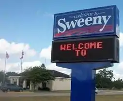 Sweeny is a city in Brazoria County, Texas, United States, the westernmost incorporated town in the county. The population is 3,626 as of 2020. The city's motto is "A City with Pride". The city was once known as Adamston.[5]