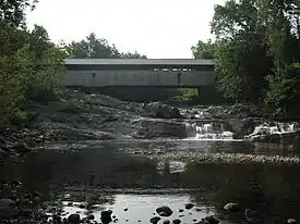 The Swiftwater Covered Bridge is a historic covered bridge which carries Porter Road over the Wild Ammonoosuc River in Bath, New Hampshire. Built in 1849, it is one of New Hampshire's few surviving 19th-century covered bridges, and a well-preserved example of the Paddleford truss design. The bridge was added to the National Register of Historic Places in 1976.[1]