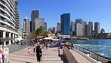Sydney Cove is a focal point for community celebrations, due to its central Sydney location between the Sydney Opera House and the Sydney Harbour Bridge. It is also one of the main congregation points for Sydney New Year's Eve[14] and Australia Day events.[15]