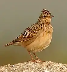 Sykes's lark (Galerida deva) is a species of lark found in the dry open country of India. Its distribution is mainly restricted to central India, although stray records have been found elsewhere on the sub-continent. It is identified by its prominent crest and its overall rufous colouration. It has streaks on its breast which are less prominent than those found in the Oriental skylark.