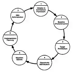 The Standards-Based Architecture (SBA) planning process. defined by the TAFIM, consists of seven distinct, but interdependent, phases. Each phase of the SBA process is intended to create specific deliverable products and or documents, that guide the subsequent phase. The seven phases are briefly outlined below.[9]