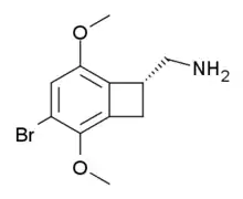 TCB-2 is a hallucinogen discovered in 2006 by Thomas McLean working in the lab of David Nichols at Purdue University.[1] It is a conformationally-restricted derivative of the phenethylamine 2C-B, also a hallucinogen, and acts as a potent agonist for the 5-HT2A and 5-HT2C receptors with a Ki of 0.26 nM at the human 5-HT2A receptor. In drug-substitution experiments in rats, TCB-2 was found to be of similar potency to both LSD and Bromo-DragonFLY, ranking it among the most potent phenethylamine hallucinogens yet discovered.[1] This high potency and selectivity has made TCB-2 useful for distinguishing 5-HT2A mediated responses from those produced by other similar receptors.[2] TCB-2 has similar but not identical effects in animals to related phenethylamine hallucinogens such as DOI, and has been used for studying how the function of the 5-HT2A receptor differs from that of other serotonin receptors in a number of animal models, such as studies of cocaine addiction and neuropathic pain.[3][4][5][6]