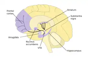 The nucleus accumbens (NAc) has a significant role in addiction. In the nucleus accumbens of mice, repeated cocaine exposure resulted in reduced TET1 messenger RNA (mRNA) and reduced TET1 protein expression. Similarly, there was a ~40% decrease in TET1 mRNA in the NAc of human cocaine addicts examined postmortem.[28]