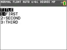 :Menu("TITLE","FIRST",1,"SECOND",2,"THIRD",3)