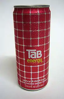 Tab Energy was a low calorie energy drink created by The Coca-Cola Company. The beverage is unique as it is sweetened with sucralose (rather than saccharin), it has a translucent pink color, and is lightly carbonated.