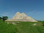 Comalcalco is a Maya archeological site near the modern city of the same name, on a bank of the Mezcalapa River. While it is not the only Mayan city whose monumental architecture is of adobe brick instead of stone, it is the only one which has had extensive reconstruction, and is open to the public. The Mayas here used adobe because of the lack of building stone in the area, instead using the abundant clay and lime extracted from shells. The Mayan city developed between 800 and 1100 AD, contemporary with Palenque and Yaxchilan. The name of the site comes from Nahuatl and means place of comals (a kind of cooking pan), but its Mayan name was Hoi Chan, which means "cloudy sky". The site covers 577 hectares and with a total of 282 structures. The main monuments are La Plaza Norte, La Gran Acropolis and the Eastern Acropolis.[45]