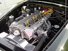 The Lagonda engine received a new cast iron block with top seating liners, used in the DB Mark III that debuted in 1957. After modifications, the DBR2 engine was used in the DB4 (1958), DB5 (1963), DB6 (1965) and DBS (1967). The V8 first appeared in the DBS V8 in 1969, going on to power Aston Martins for part of five decades before being retired in 2000. A prototype was fitted in the mid-'60s in a one-off DB5 extended 4" after the doors and driven by Marek personally,[4] and a normally 6-cylinder Aston Martin DB7 was equipped with a V8 unit in 1998.[5][6]