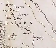 Tagmadert (also Tagumadert, Tagmad(d)art, Tigumedet) is a city in the Draa River valley in Morocco. It is the place of origin of the members of the Saadi Dynasty. Despite the fact that Tagmadert is indicated on most older European maps, there is some uncertainty about its exact location. According to Charles de Foucauld its location was identical to present-day Fezouata, the district directly north of the Ktawa, including the village of Tamegroute.[1] There is a description of Tagmadert by the 17th century traveller Marmol.[2] The name seems to have referred to both a district and a town.