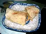 | Green onion pancake | 蔥油餅 | cōngyóubǐng | Chinese | Spring onion flour pancake with many thin layers, made with scallions (chopped green onions). Cheese and egg are popular additional fillings.[12] A snack originating in the Chinese mainland. | ||