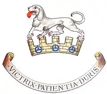 "The Talbot" (or "Talbot Arms") is most familiar as a name of English public houses or inns and is usually depicted on the signs as a large white hound with hanging ears, sometimes with spots. Heraldic inn signs usually displayed the arms or heraldic badges of the lord of the manor in which they were situated, who was probably the owner of the freehold interest, together with that of most other houses in the village.[12] As the Talbot family possessed countless manors throughout England, the sign would have been well-known. Such signs helped to identify the inn for the illiterate. An inn called The Talbot in Iwerne Minster, Dorset, U.K., showed as its sign a black dog, apparently the crest of the Bower family, who owned the manor from the late Middle Ages till 1876.[13] The "Talbot Inn" in Mells, Somerset is an allusion to the arms of the Horner family of Mells Manor: Sable, three talbots argent, the arms being possibly a play on the surname as hunting hounds are controlled by the blowing of horns.
