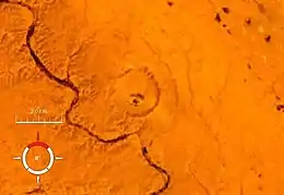 ![]() Landsat image of the Talemzane crater; screen capture from NASA World Wind | |