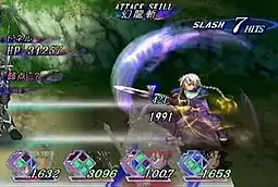 Rebirth was officially announced in April 2004,[15] a week after the game's title and existence had been leaked to the public early after a story from Jump magazine was made available a week early due to mistakenly being shipped early.[16] In July, Namco announced that people who pre-ordered Tales of Symphonia for the PlayStation 2 would receive a bonus disc featuring footage from an early build of Tales of Rebirth, upon purchasing Symphonia in September.[17] The same footage, along with a playable build of the game was present at the Tokyo Game Show in the same month.[18] The game was released on the PlayStation 2 on December 16, 2004.[19] In July 2004, IGN reported that Tales of Rebirth was a likely candidate for an English localization in North America due to the positive reception and sales of Tales of Symphonia in North America for the Nintendo GameCube.[20] The PlayStation Portable port of the game, which featured graphical adjustments for the platform's widescreen, was announced in July 2007.[21] The port was made following the port of Destiny 2. As with those games, transplanting the 2D graphics onto the PSP and maintaining the experience of the original caused some difficulties. Conversely, they found the memory capacity of the PSP compared to the PS2 a good thing. Yoshizumi felt that the fact that it was a port rather than a remake divided the development team.[22] The port also included extra minor story scenes and a viewing gallery for concept art.[23] Neither the original nor the port of Rebirth have received an English localization, making it one of three mainline Tales titles to not have come to the west.[24]