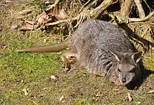 In one population of tammar wallabies, the tick species Ixodes hirsti was found to infest them during autumn and winter while those of the genus Amblyomma were more common in spring and summer.[42] In late 1998 and again in early 1999, 120–230 tammar died suddenly in research facilities and zoos in New South Wales and Queensland, perishing less than 12 hours after their sickness was discovered, with most showing no symptoms prior. Necropsies revealed haemorrhaging of the muscles, and numerous internal organs. The syndrome is known as tammar sudden death syndrome and the pathogen is an orbivirus of the family Reoviridae.[43][44] It does not occur south of Sydney,[45] and treatment is difficult due to the rapid progression of the disease.[46]