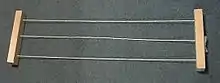Two flat blocks of wood each pierced with three small holes are joined with three parallel strings. Each player holds one of the blocks of wood. The first player holds one block of wood still, while the other player rotates the other block of wood for two full revolutions. The plane of rotation is perpendicular to the strings when not tangled. The strings now overlap each other. Then the first player tries to untangle the strings without rotating either piece of wood. Only translations (moving the pieces without rotating) are allowed. Afterwards, the players reverse roles; whoever can untangle the strings fastest is the winner. Try it with only one revolution. The strings are of course overlapping again but they can not be untangled without rotating one of the two wooden blocks.